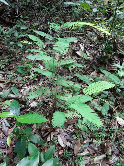 Kuva 1. Liaanien ja puiden siementaimia sademetsän aukkokohdissa. Paragominas, 2021. Kuva: Johan Slätis.
