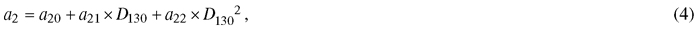 a0 .. a2 = puulajikohtaiset parametrit, joiden arvot saadaan kaavoilla 2–4,